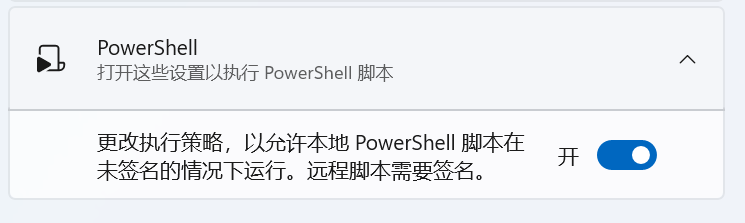 解决方法 打开设置-隐私和安全性-开发者选项-PowerShell 将该选项打开