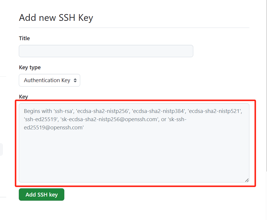 设置密钥名称,并将上一步骤复制的公钥粘贴至此处